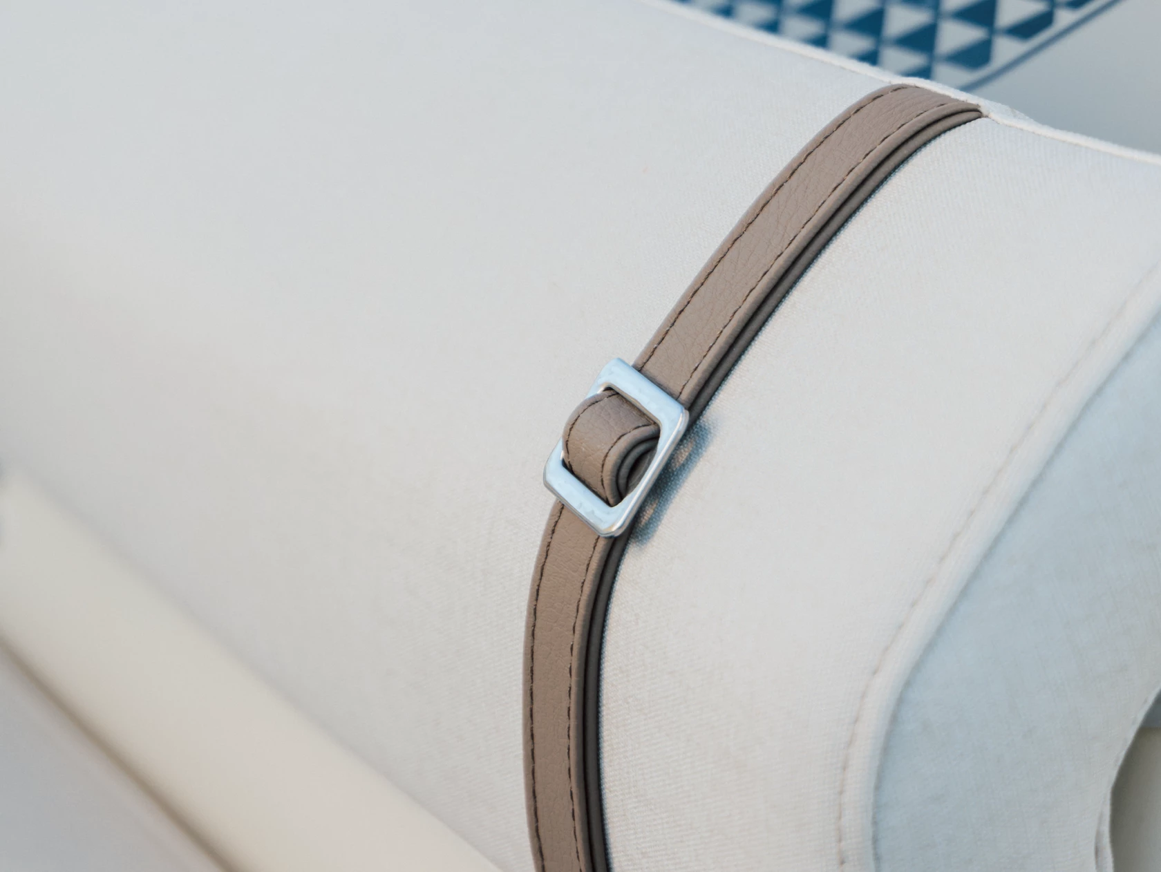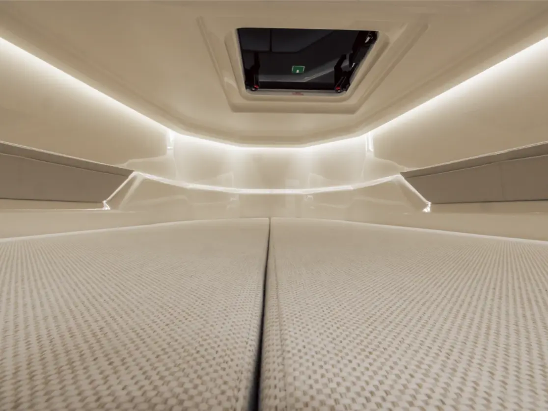 The versatile Multi-Storage Compartment combines practicality with comfort. It provides storage for watersports gear like wakeboards, kneeboards, and waterskis while converting into a 1.50-meter sunbathing area with ease. A repositionable backrest allows passengers to sit lengthwise or crosswise, offering flexible seating. This smart design maximizes space and enhances comfort, perfect for day-long adventures without sacrificing the boat’s sleek, modern aesthetic.